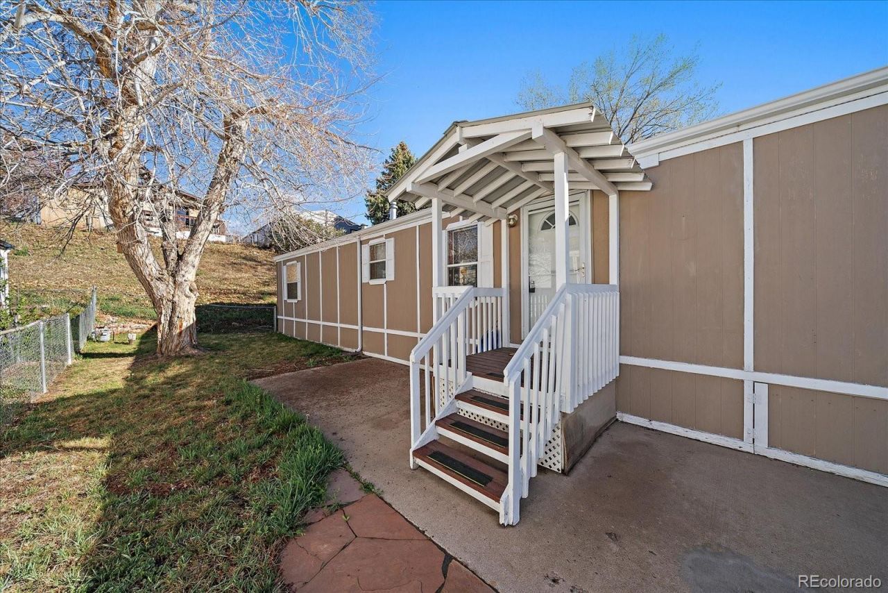 Welcome to Golden Terrace near the heart of Golden, Colorado! This bright and well-cared-for 3-bedroom, 2-bathroom manufactured home, built in 2013, offers a comfortable and functional layout with thoughtful updates throughout. Inside, youll find a light-filled living space that flows seamlessly into the kitchen that is perfect for everyday living and entertaining. The kitchen offers generous counter space and plenty of cabinetry for storage. Wood laminate flooring provides easy maintenance, while the bedrooms feature newer carpet for added comfort. Fresh interior paint and updated blinds give the home a clean, move-in ready feel. The spacious primary bedroom includes an oversized closet, and the two additional bedrooms are also generously sized with great storage. This home is equipped with central A/C for year-round comfort and includes all appliances plus an upgraded front-load washer and dryer. A newer roof adds extra peace of mind. Step outside to enjoy the covered front porch and a rare fenced yard ideal for pets, relaxing, or entertaining under the shade of a mature tree. The property also includes two off-street parking spaces for added convenience. Located in the desirable Golden Terrace community, youll love being close to parks, trails, dining, and everything Golden has to offer. This home is situated on a leased lot within Golden Terrace. Buyers will need to apply and be approved for the lot lease through the community. Schedule your showing today!