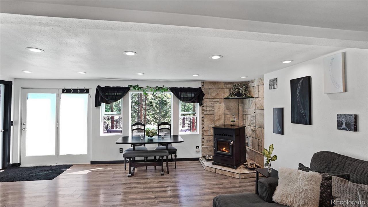 This beautiful raised-ranch home sits on 2 full acres in the Pine Valley North subdivision, surrounded by plenty of trees and woodland scenery. A large front patio offers a great place to relax in the summer sun while taking time to view the local wildlife. The house has a welcoming presence, with an open and practical floorplan. Starting with a cozy yet spacious living/dining area that includes a pellet stove and tile surround for warmth on those wintry days, the home also has a well-designed kitchen, large pantry, utility room, plus clean lines and a soothing black and white wall palette throughout. Luxury vinyl flooring, plenty of space for living and entertainment, and a convenient half bath on the lower level. On the upper/main level, four bedrooms and a full bathroom offer plenty of sleeping/living space. Additional amenities include six panel wood doors, hall closet, vaulted ceilings, and lots of natural light. The property offers peace and quiet when you want it, and outdoor activities, such as biking, hiking and ATVing for the energetically-inclined. In the owners words, there is space to grow and add. Watching the colorful sunrises and sunsets is a favorite pass-time. The owners added that their children loved the schools and easy access to a lake and park just a minute away. The neighbors are kind and quick to lend a hand, and the land (where) you can have many people over for get-togethers?a PERFECT FAMILY HOME!! Hwy 285 is just a few miles away, with access to Denver and Fairplay, and of course, the town of Pine Grove. Check out the 3-D tour and pictures and call for your personal showing. Youll be so glad you did!SEPTIC TANK IS 1,000 GALLON DESIGNED FOR 3 BED ROOMS.