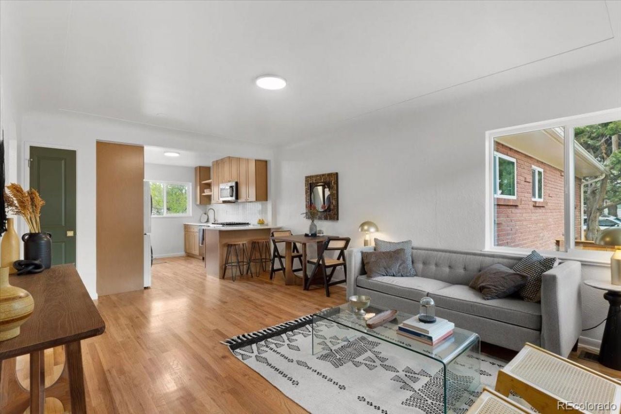 Ask us how to get a lower interest rate with $8,000 lender credit using our preferred lender! Check out this cute and comfy 2 Bedroom 1 bath townhome in North Park Hill with NO HOA! Walk into open concept living and dining. The kitchen is the highlight of the home featuring an eat-up peninsula, quartz counters, gas range with over the range microwave, a beautiful backsplash, new solid-wood cabinets, new GE stainless steel appliances, and gold hardware. Move into the hallway and find yourself at the spa-like bathroom. Completely updated with Zellige-style tile and new finishes for a modern aesthetic. 2 spacious bedrooms on either side of the hallway. Flowing naturally from the living dining area out through the back door to the private yard with patio area and a HUGE artificial turf lawn (low maintenance!) ready for BBQs and for the pup to play! Off the front door features another area exclusive to this unit ready for some patio furniture or some planter boxes! The unique Colorado Red Sandstone brick gives this building a native Denver flavor. This home is truly move in ready with nearly everything updated including new roof, new windows, tankless water heater, new HVAC, and brand new washer/dryer included. Off street parking included. Some local favorites close by: Rubys Good Shoes, the shops and dining at Park Hill Commons, two blocks to Skyland park, public library, and rec center. Shopping/dining in Central Park nearby as well! Easy access to downtown or I70 to the mountains. Make it home while you can!