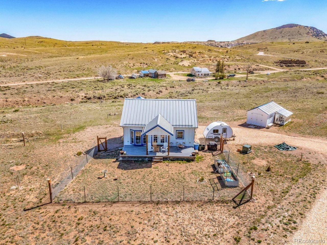 DARK SKIES RETREAT, MOUNTAIN VIEWS: Refined mountain living awaits in this beautifully crafted custom cabin in Westcliffes renowned Dark Skies community. This 720 sq. ft., one-bedroom home is thoughtfully designed with durable 2x6 construction and a bright open-concept living and dining area beneath soaring cathedral ceilings. The custom kitchen features crushed quartz countertops, soft-close cabinetry, and quality finishes throughout. Large windows capture stunning views of the Sangre de Cristo Mountains while filling the home with natural light. Step outside to a full-length, partially covered front deck-perfect for morning coffee, relaxing evenings, or world-class stargazing. Comfort is ensured year-round with heating and cooling systems, plus a Vermont Castings propane stove. The home also includes a $5,000 water softener with a reverse osmosis system. Inside, youll find a convenient ensuite ¾ bath and a laundry/mudroom with a stackable washer and dryer. Set on a crawl space, the property offers practical extras including a fenced dog run and two versatile outbuildings-both wired with electricity-including a storage building with attached greenhouse and a cozy shed. Located just minutes from town.