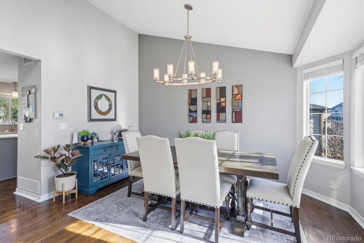 Remodeled to perfection in a highly sought after Highlands Ranch neighborhood, this stunning home delivers both style and comfort from the moment you arrive. Step inside to find rich wood flooring flowing throughout the house, creating a warm and inviting atmosphere. The beautifully updated kitchen, complete with a generous island, seamlessly overlooks the dining area and welcoming family room, highlighted by a modernized fireplace. Step outside to a newly installed concrete patio that is deal for entertaining and is surrounded by a spacious, private backyard with mature trees that provide both shade and charm. Upstairs, elegant wood stairs lead to four bedrooms and two updated bathrooms. The basement offers versatile flex space, perfect for a home gym, media room, or office that can be tailored to fit your lifestyle. Completing the home is a rare and expansive three car garage featuring epoxy flooring, additional storage and stylish carriage-style doors. Updating includes refinished wood flooring, new interior doors, all new moldings throughout, new interior paint, new lighting, remodeled kitchen, remodeled bathrooms, new garage doors, new exterior paint, new concrete in the front and back and newly finished basement in 2020.