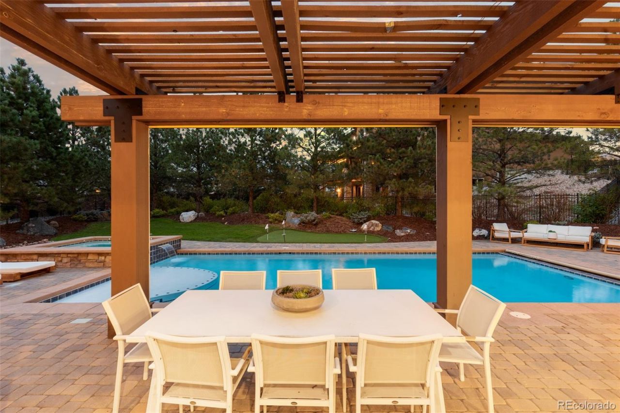 Nestled on a private cul-de-sac in the coveted gated community of Heritage Hills, 9316 Vista Hill Way is a masterfully crafted 5-bedroom, 7-bathroom residence built by Celebrity Homes in 2017. Designed for seamless indoor-outdoor living with a $200,000 renovation including the addition of dual Nano doors, pergola with privacy shades, Stone accent wall and linear fireplace and kitchen updates. Also featured is an expansive covered outdoor lounge with built-in heaters and a projector screen?ideal for evening movies under the stars.Inside, custom hardwood floors, knotty alder doors, black iron accents and fresh new paint create a warm, refined ambiance. The gourmet kitchen boasts Sub-Zero and Wolf appliances, a spacious walk-in pantry, and opens to a large great room leading to a backyard oasis?complete with a pool/electric pool cover, hot tub, putting green, and al fresco dining.The luxurious primary suite offers a private sitting area with beverage center, dual custom walk-in closets, oversized copper tub, heated floors and direct access to the pool and spa from a private balcony. Two additional en-suite bedrooms are located upstairs along with a convenient second-floor laundry, and media room, while a guest en-suite resides on the main level.Additional highlights include a custom 1500 bottle wine room, 4 Car garage with epoxy floors and built-in cabinetry, and a large basement featuring a river rock bar with raw-edge granite, beverage center, dishwasher, refrigerator, and ice maker and a spectacular mirrored home gym, and ample space for indoor/outdoor entertaining. Additionally, the interior courtyard has been thoughtfully transformed into a private basketball court, a perfect complement to the expansive lower level for a sports lovers dream!Located minutes from I-25, C-470, and the Denver Tech Center, and close to restaurants, shopping, trails, tennis courts, and community amenities?this home is the perfect blend of luxury, comfort, and lifestyle!!