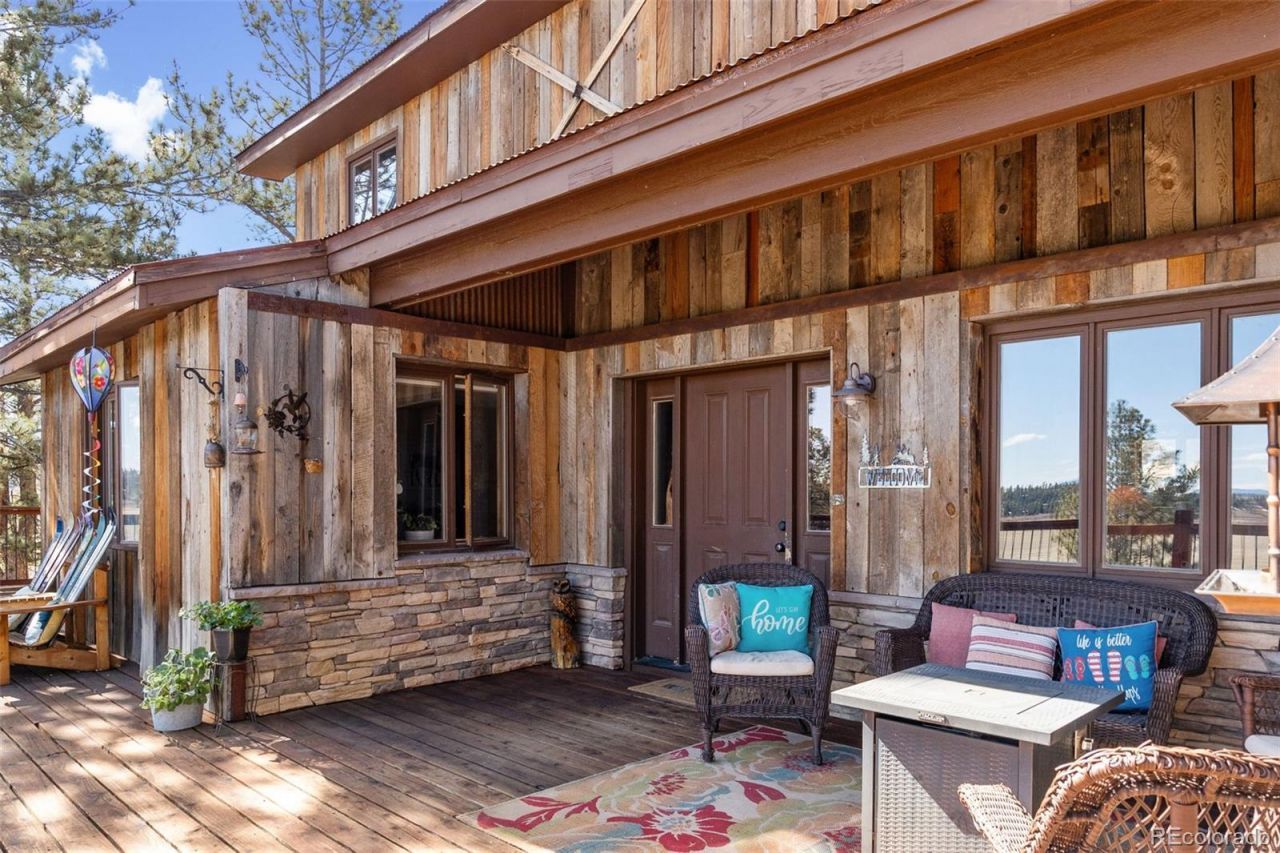 Nestled in the rugged beauty of the Colorado mountains, The Lucky Burro Mountain Lodge offers a quintessential rustic retreat for those seeking tranquility and adventure. Located in Redhill Forest, a private fly fishing community, outdoor enthusiasts will delight in the private gated fly fishing exclusive to deeded owners on the Middle Fork of the South Platte River as well as hunting in limited trophy unit #50 on Reinecker Ridge. Accessible via an easy paved county maintained road, this home is a sanctuary sheltered from the elements, boasting a Southern exposure that bathes the lodge in warmth and light. With its uniquely durable Trestlewood siding, resilient metal roof, and charming stone façade, this low maintenance home blends seamlessly with its natural surroundings, ensuring both durability and timeless appeal. Step inside to discover an updated and spacious layout, perfect for hosting large gatherings or simply unwinding in comfort on the expansive wrap around deck. The chefs kitchen is perfect for entertaining, with plenty of counter space and a generous island with bar seating. The primary suite offers a peaceful retreat with its ensuite bath. All four bedrooms are located on the same level, providing a functional layout thats perfect for both everyday living and vacation stays. For those seeking added flexibility, the hospitality suite lock-off unit with privacy for guests or potential income. And when it comes to views, prepare to be captivated by the breathtaking panoramas stretching over 100 miles, showcasing the majestic Sangre de Cristo range, and the iconic Collegiate peaks. Easy access to the front range means your next adventure is within reach. As a private fly fishing community, Redhill Forest uniquely offers exclusive access to the regions abundant wildlife and pristine waters. Whether youre casting a line in search of trout or exploring the vast wilderness, The Lucky Burro Mountain Lodge promises an unparalleled mountain living experience.